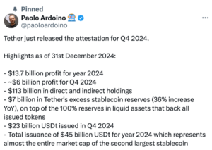 Yakın zamanda ise Tether, Avrupa’nın yeni MiCA düzenlemeleri nedeniyle borsaların USDT’yi liste dışı bırakma kararına tepki gösterdi. Crypto.com gibi borsaların düzenlemelere uyum sağlamak için USDT ve dokuz token’ı kaldırması, Tether tarafından hoşnutsuzluk olarak karşılık aldı. Bu hareket, stablecoin düzenlemeleri üzerindeki baskıyı daha da artırdı. Tether, bu yeni düzenlemelerin etkilerini ve dayanaklarını sorguluyor.